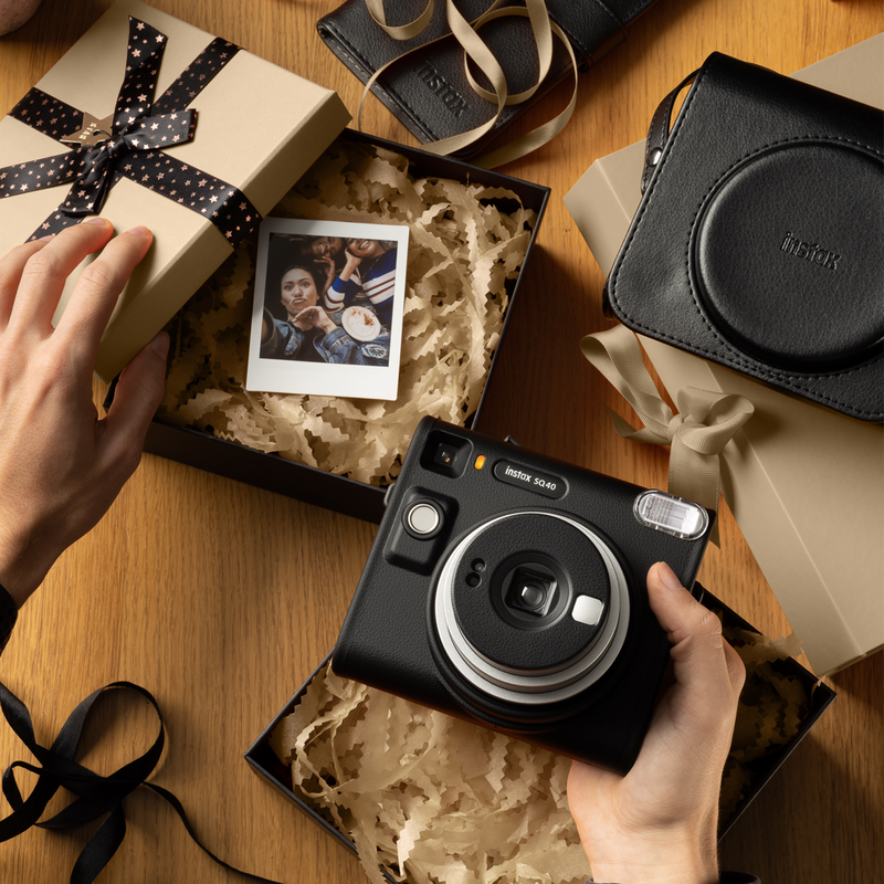 Een stoer en tijdloos design: de instax SQUARE SQ40™ is een klassieker. Met zwarte details en een verfijnde afwerking straalt de camera het gevoel van analoge fotografie uit.